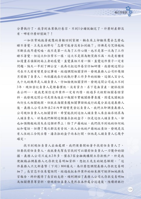 月前換了負責人;而依據我在行政執行署工作多年的經驗,這個人百分之